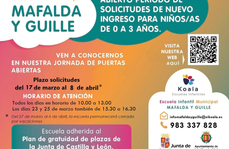 Abierto el Periodo de Solicitud de Plaza para el curso 2026-2027 El plazo publicado por la Junta de Castilla y León será del 17 de marzo al 8 de abril … MÁS